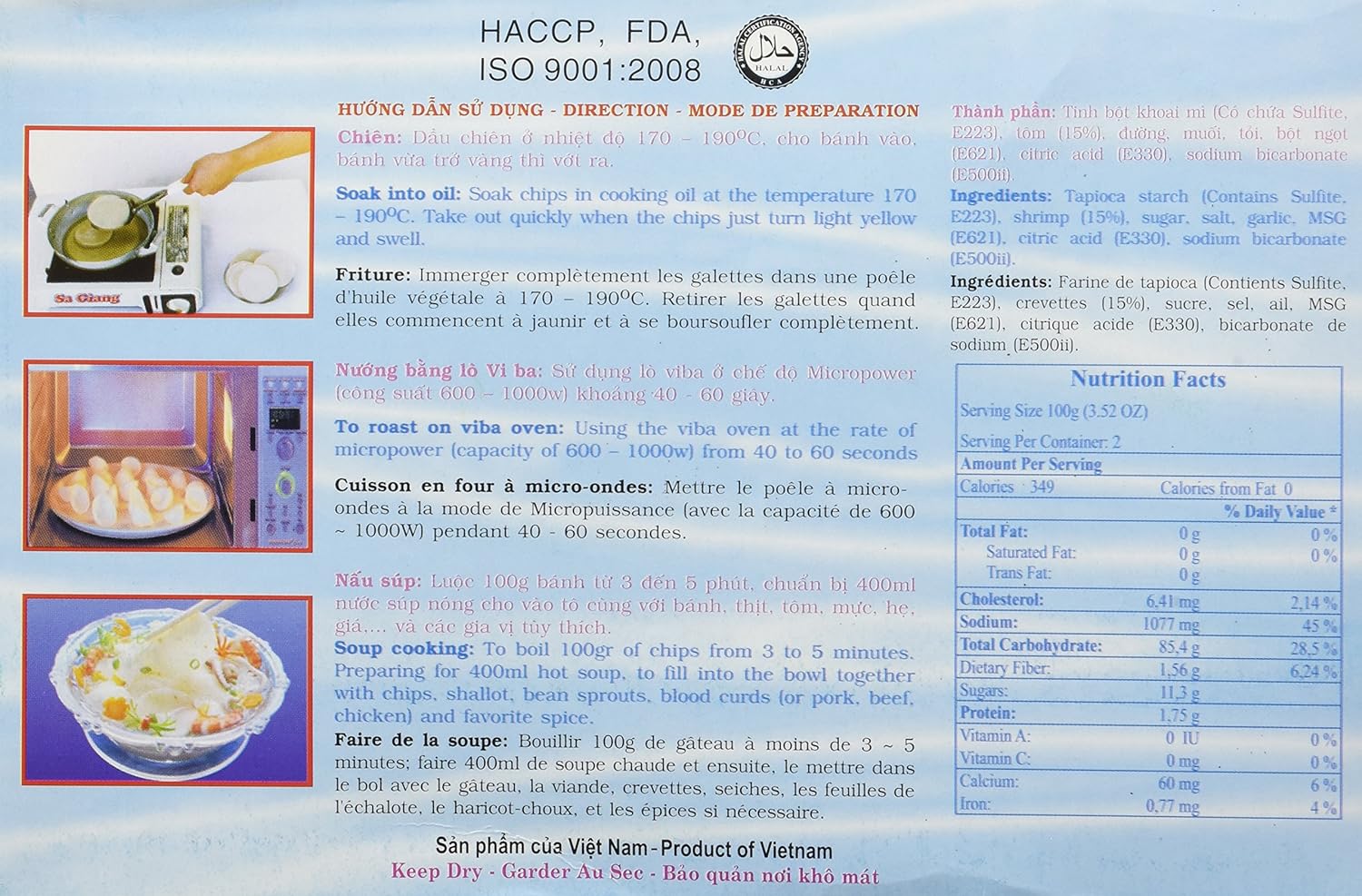 The biggest and best flavored "shrimp chips" you've ever had in your life. These taste better than other chips and are hard to find. These are the tasty shrimp flavored chips that puff up when deep-fried. Special Shrimp Chips ) make a great snack food for both kids and adults. Their texture and flavor goes very well with beer. For best results, don't fry too many of the crackers at once, and have a wire basket or wooden chopsticks ready to quickly remove them from the hot oil. Get the best results deep-frying 1 - 3 crackers at a time - any more, and it's difficult to remove them from the pot of oil quickly.