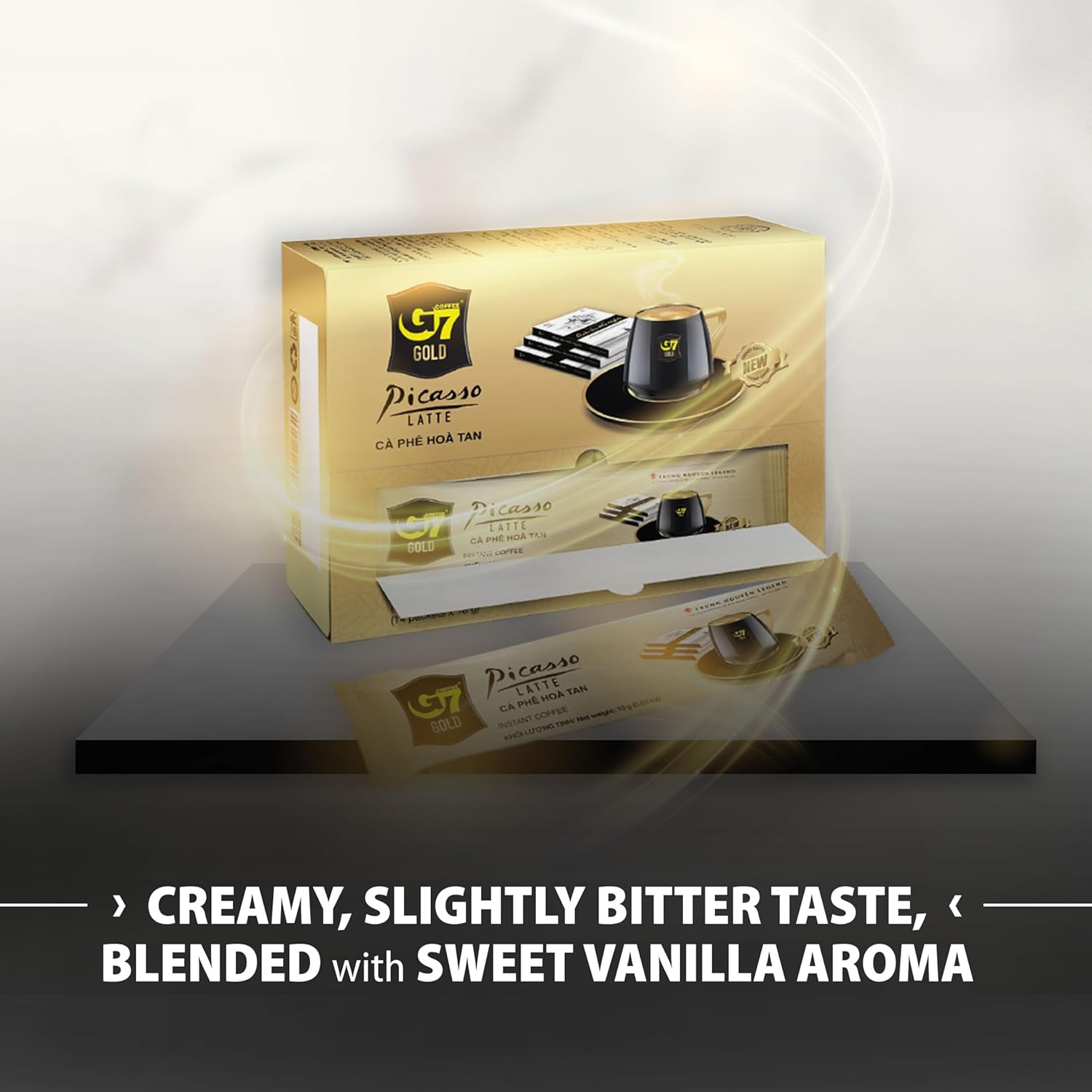 - ☕ PREMIUM INSTANT COFFEE. With 8.9oz single stick create a cup of Latte anytime. A package includes 12 sticks of G7 Gold Picasso Latte.