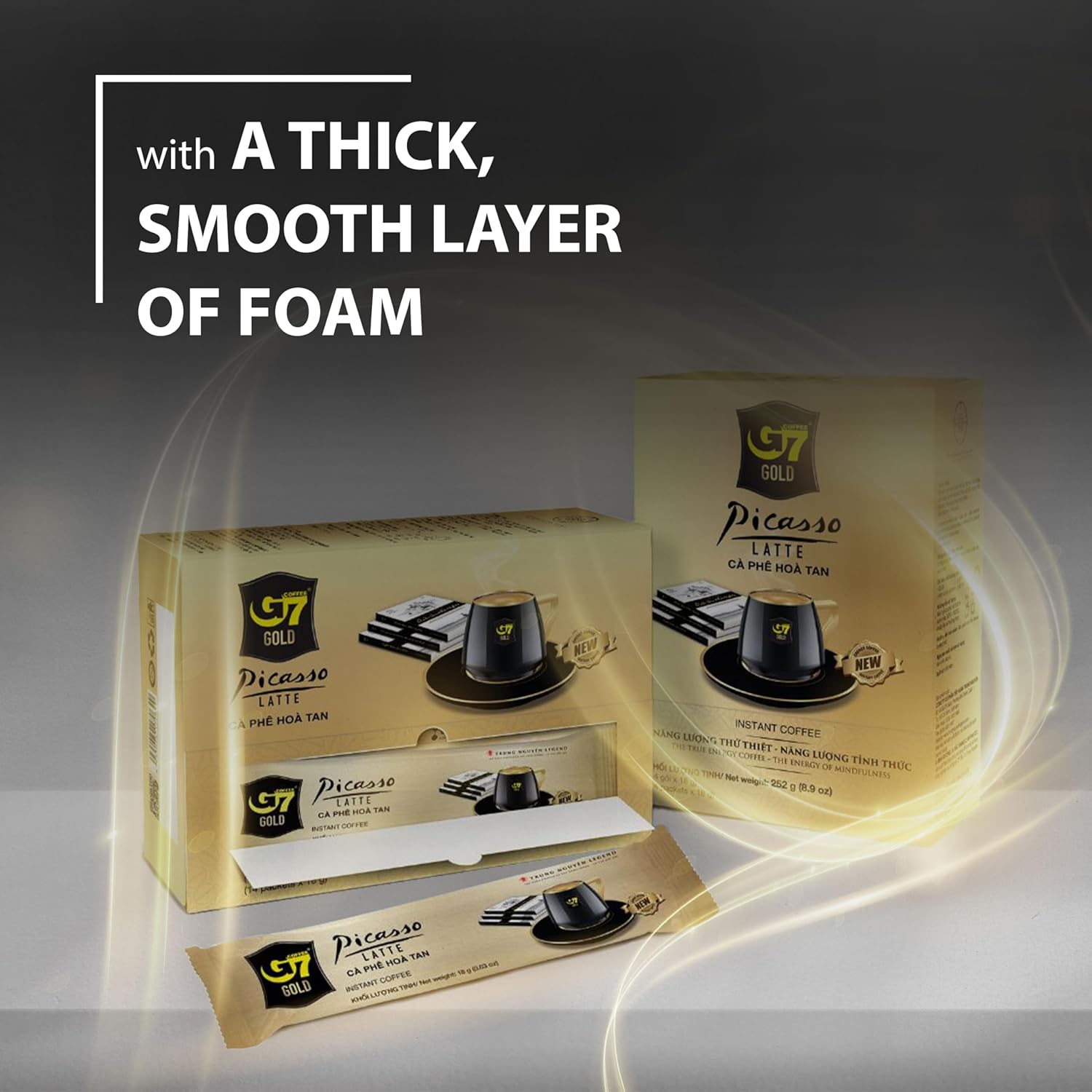TRUNG NGUYEN G7 Gold Picasso Latte Instant Coffee Single Served Sticks for Energy Boost (8.9 oz - Box of 14 Sticks)