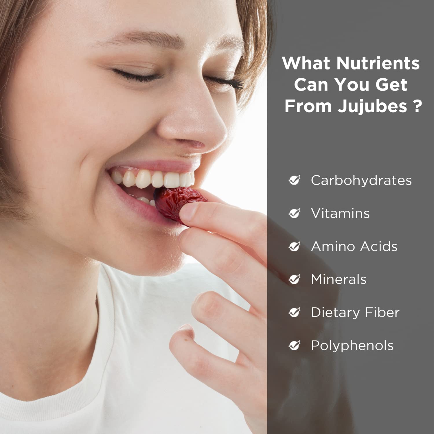 • ✅ Jujube is a nutritional good, known as the "king of all fruits". Jujubes are rich in vitamins A, B, C and other essential vitamins and 18 kinds of amino acids and minerals, among which the content of vitamin C (ascorbic acid) is as high as 70-80 times that of grapes and apples, and the content of rutin (vitamin P) is also very high.